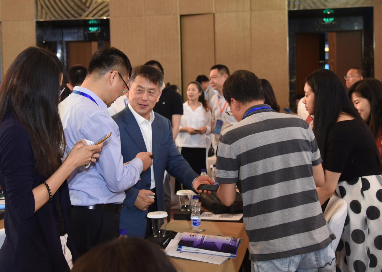 圖為與會(huì)代表現(xiàn)場(chǎng)交流洽談