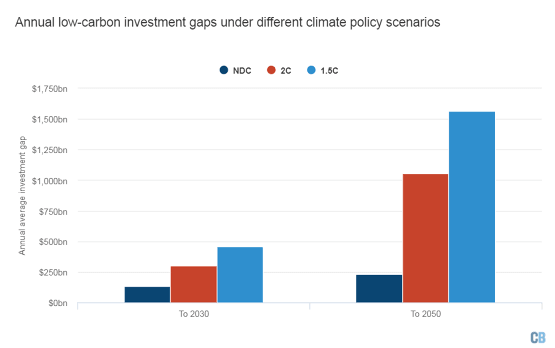 該研究稱,對于1.5C目標,需要額外的4580億美元。這意味著就每噸二氧化碳避免的投資量而言,這是一個“階段性變化”,它補充道。