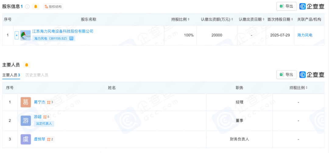 近日,海力海上風(fēng)電裝備(溫州)有限公司成立,法定代表人為游超,注冊(cè)資本為20000萬(wàn)元。新公司經(jīng)營(yíng)范圍包含:新能源原動(dòng)設(shè)備制造;海上風(fēng)電相關(guān)裝備銷售;海洋工程裝備制造;海洋工程裝備銷售;海洋工程平臺(tái)裝備制造;海洋能系統(tǒng)與設(shè)備銷售;海洋能系統(tǒng)與設(shè)備制造;海洋工程關(guān)鍵配套系統(tǒng)開(kāi)發(fā);海上風(fēng)電相關(guān)系統(tǒng)研發(fā);風(fēng)電場(chǎng)相關(guān)系統(tǒng)研發(fā);風(fēng)電場(chǎng)相關(guān)裝備銷售等。企查查股權(quán)穿透顯示,該公司由江蘇海力風(fēng)電設(shè)備科技股份有限公司100%持股。