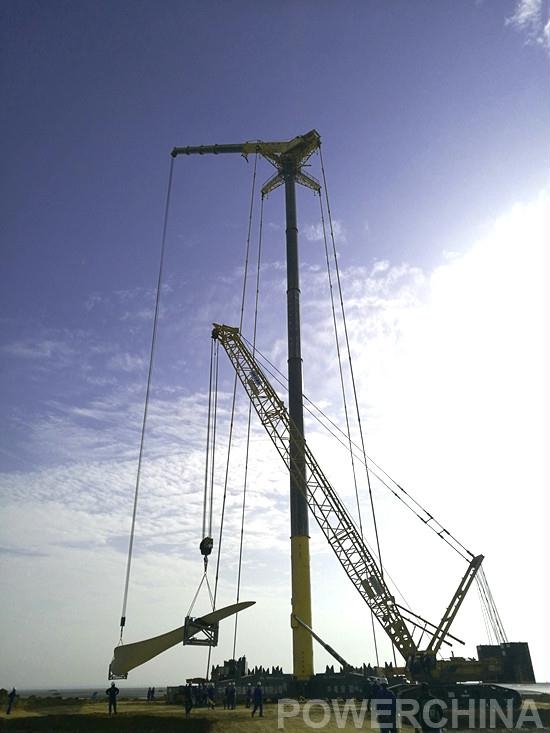 在整個吊裝過程中,現(xiàn)場施工人員嚴(yán)格按照安全和質(zhì)量施工要求,在地表溫度高達50攝氏度的情況下,施工人員頭頂烈日,不畏酷暑,科學(xué)組織,積極應(yīng)對,每天奔波于風(fēng)機吊裝現(xiàn)場。通過全體人員的共同努力,在合同規(guī)定時間內(nèi)完成了全部吊裝工作。中國電建人的高超技藝和“鐵軍”精神讓OES和設(shè)備廠家紛紛豎起了大拇指,再一次提升了中國電建的品牌。