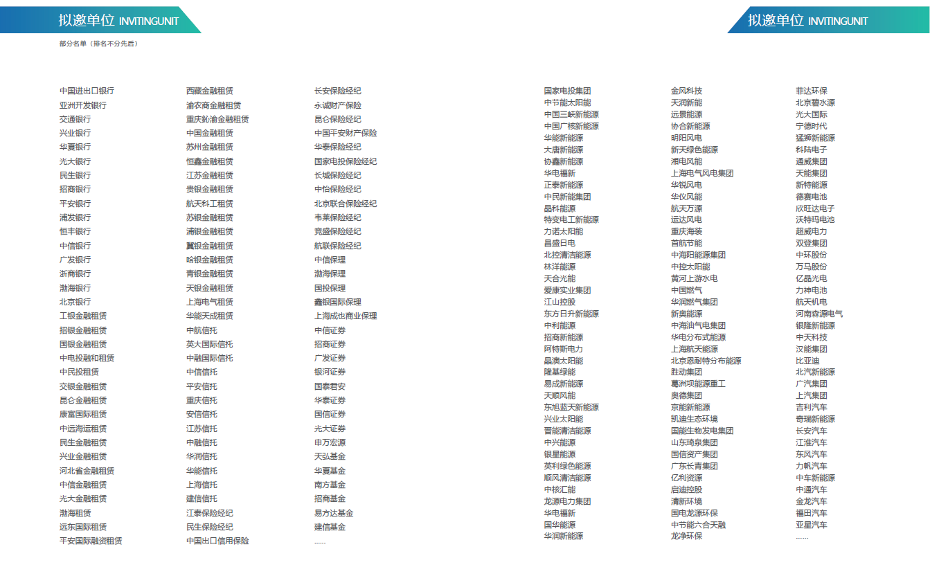 包容、開(kāi)放、合作是“能金會(huì)”一貫主張,各路專家學(xué)者、行業(yè)大咖共聚一堂,為能源金融發(fā)展獻(xiàn)策獻(xiàn)力,實(shí)現(xiàn)行業(yè)的共享、共贏是大會(huì)不變的中心思想。據(jù)了解,第二屆“能金會(huì)”擬邀請(qǐng)國(guó)家級(jí)行業(yè)協(xié)會(huì)、重點(diǎn)科研院所、大型咨詢公司、銀行及各分行、融資租賃、保險(xiǎn)信托、基金、證券、保理、資本、風(fēng)投、金控等金融機(jī)構(gòu)和央企及央企子公司、省市級(jí)地方國(guó)企、水電、儲(chǔ)能、太陽(yáng)能、風(fēng)能、氫能、生物質(zhì)能、新能源汽車(chē)、節(jié)能、環(huán)保、分布式、創(chuàng)新技術(shù)、冷熱電聯(lián)產(chǎn)、綜合能源服務(wù)、能源EPC設(shè)計(jì)商、承建商等政府機(jī)構(gòu)、科研單位、能源企業(yè)和國(guó)內(nèi)權(quán)威媒體、行業(yè)媒體參會(huì),會(huì)議規(guī)模預(yù)計(jì)將達(dá)700人。