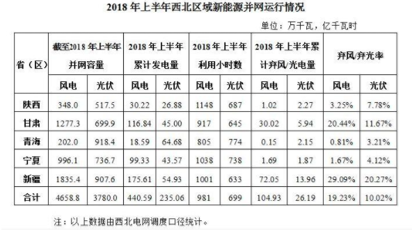 2018年上半年,西北五省(區(qū))新增光伏發(fā)電并網(wǎng)容量280萬(wàn)千瓦,累計(jì)并網(wǎng)容量3780.0萬(wàn)千瓦,占全網(wǎng)總裝機(jī)的15.48%;光伏發(fā)電量235.06億千瓦時(shí),占全網(wǎng)總發(fā)電量的6.34%;平均利用小時(shí)數(shù)699小時(shí),棄光電量26.19億千瓦時(shí),棄光率10.02%。西北五省(區(qū))棄光率依次為:陜西7.78%、甘肅11.67%、青海3.21%、寧夏4.12%、新疆20.27%。