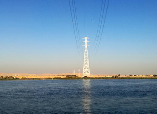 埃及EETC500千伏主干網(wǎng)升級(jí)改造輸電工程。圖為輸電線路跨越尼羅河,國家電網(wǎng)公司按照建設(shè)“一帶一路”標(biāo)桿工程開展項(xiàng)目履約。