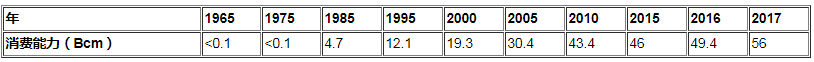 圖16:埃及天然氣產量,消費量,凈出口量,凈進口量(EIA,2018)