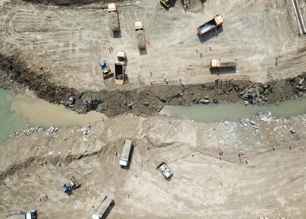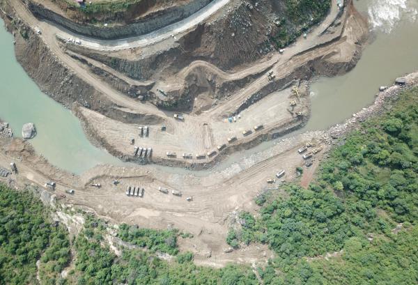 9月22日,在巴基斯坦旁遮普省卡洛特地區(qū),卡洛特水電站項(xiàng)目正在進(jìn)行大江截流作業(yè)。新華社記者劉天攝