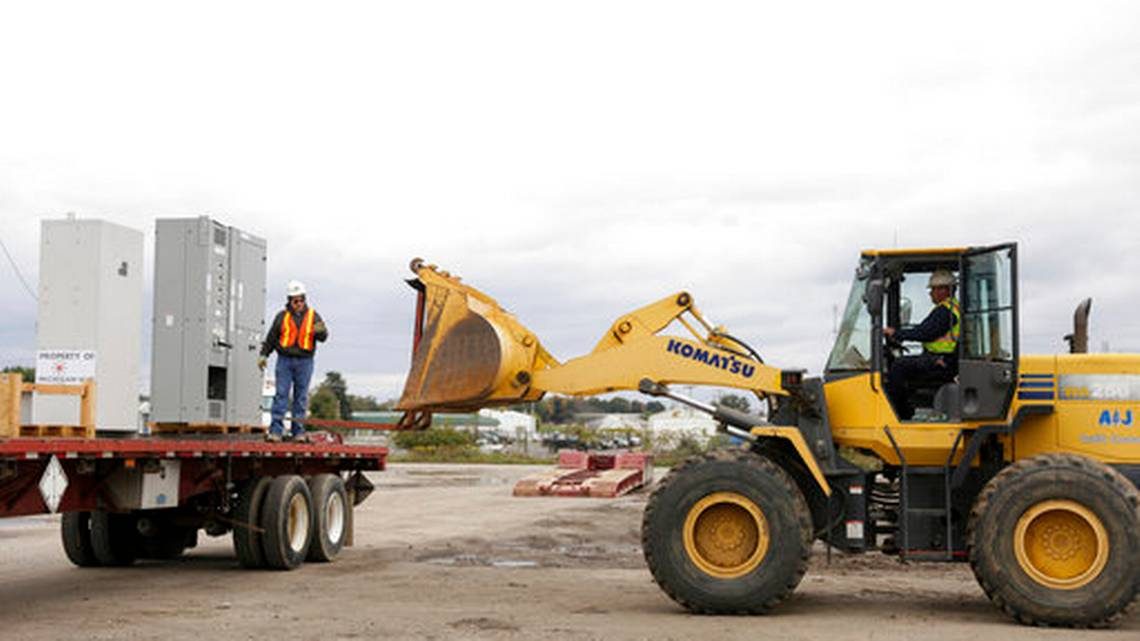 正在密歇根中心站點(diǎn)卸載工作。美聯(lián)社照片