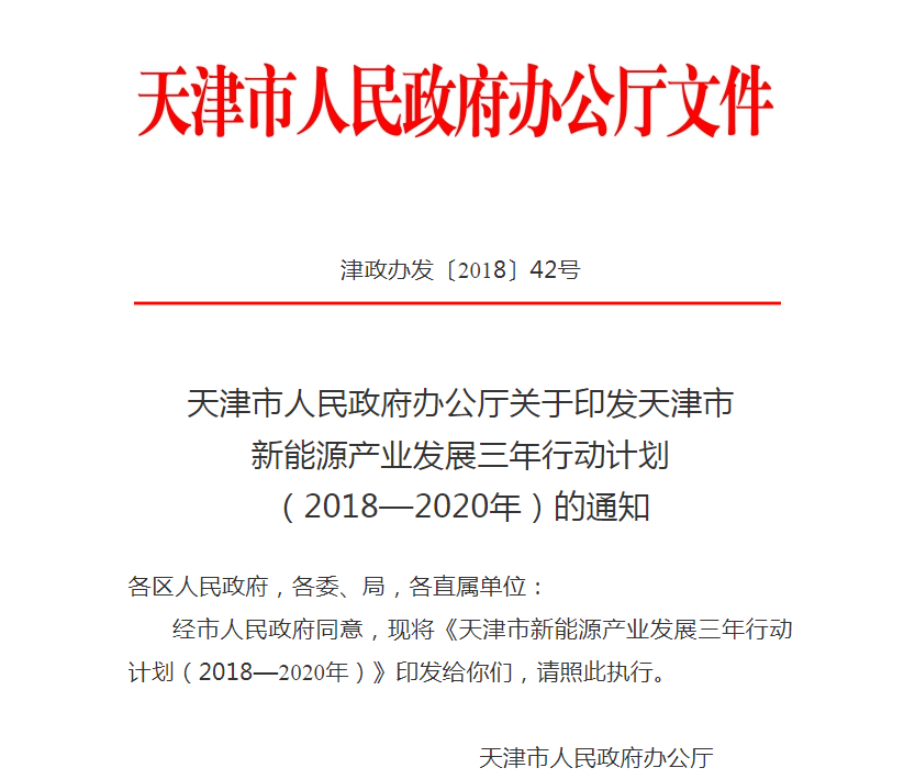 天津市新能源產(chǎn)業(yè)發(fā)展三年行動(dòng)計(jì)劃