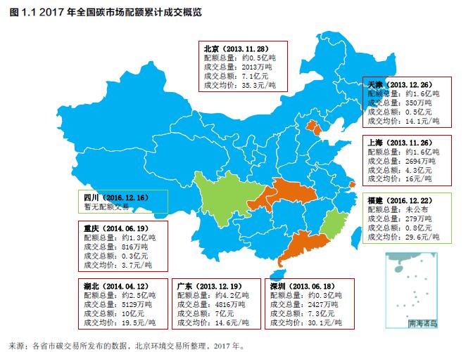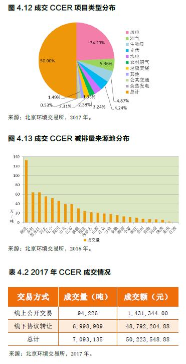 2017年,七省市二級市場線上線下共2017年12月19日,國家發(fā)改委召開新聞發(fā)布會,正式宣布啟動中國碳排放權交易體系成交碳配額現(xiàn)貨接近6,740萬噸,較2016年交易總量增長約5.31%;交易額約11.81億元,較2016年增長約13.01%。CCER交易量由于各試點碳市場公布的內容及口徑不一,缺乏線上線下全國全口徑的公開統(tǒng)計數(shù)據(jù)?! ?/p>
