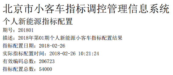 根據(jù)相關(guān)規(guī)定,2018年新能源小客車指標(biāo)6萬個(gè)。其中,個(gè)人指標(biāo)為54000個(gè),單位指標(biāo)3000個(gè)。至此,2018年新能源小客車個(gè)人和單位指標(biāo)首期已全部用盡,個(gè)人剩余152723人繼續(xù)輪候,單位剩余4657個(gè)繼續(xù)輪候。