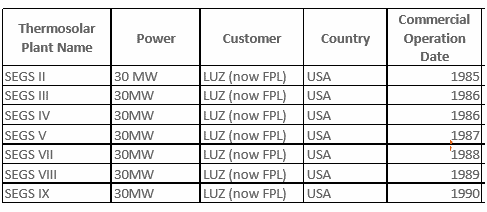 早在20世紀(jì)80年代初,首諾便為Luz公司在美國加利福尼亞州Mojave沙漠相繼建成的9座槽式太陽能熱發(fā)電電站SEGSI~SEGSIX提供導(dǎo)熱油,SEGSI系列電站總裝機(jī)容量達(dá)35.38萬千瓦,為全球最早一批商業(yè)化光熱發(fā)電項(xiàng)目。此后,Therminol®VP-1被全球二十多家商業(yè)化槽式太陽能熱發(fā)電電站廣泛采用,首諾導(dǎo)熱油覆蓋的商業(yè)化槽式太陽能熱發(fā)電電站總裝機(jī)容量達(dá)1.4GW。