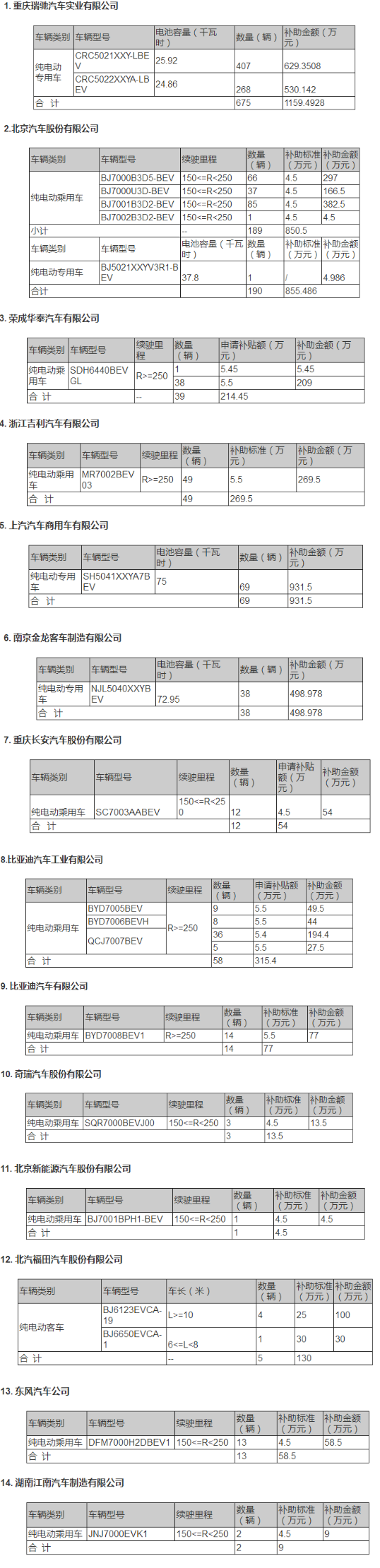 其中,重慶瑞馳汽車將獲得1159.5萬元,北汽將獲得855.5萬元,華泰汽車將獲得214.5萬元,吉利汽車將獲得269.5萬元,上汽商用車將獲得931.5萬元,南京京龍將獲得499萬元,重慶長安汽車將獲得54萬元,比亞迪工業(yè)汽車將獲得315.4萬元,比亞迪汽車將獲得77萬元,奇瑞汽車將獲得13.5萬元,北汽新能源將獲得4.5萬元,北汽福田將獲得130萬元,東風(fēng)汽車將獲得58.5萬元,江南汽車將獲得9萬元。