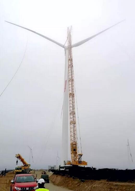 同年11月1日,風(fēng)電場(chǎng)首臺(tái)風(fēng)機(jī)吊裝完成。