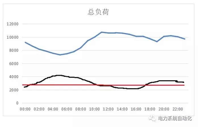 例如:某用戶并入電網(wǎng)的負荷特性曲線為(藍線),微電網(wǎng)一體化運營主體可申報與并入電網(wǎng)峰谷反向的容量曲線(黑線)。同時,一體化運營主體申報容量曲線為一條直線(紅線)也存在技術(shù)可行性。