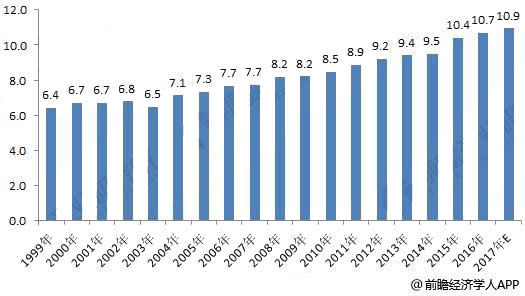 圖表1:1999-2017年我國秸稈理論資源量(單位:億噸)