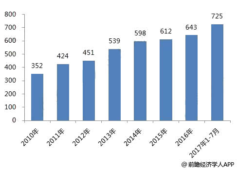圖表6:2010-2017年中國秸稈發(fā)電裝機(jī)規(guī)模(單位:萬千瓦)