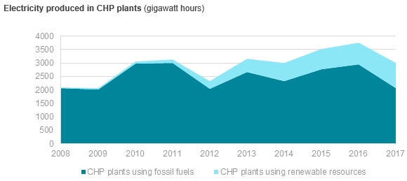 自2008年以來(lái),RES燃料熱電聯(lián)產(chǎn)電廠的發(fā)電量增長(zhǎng)了29個(gè)百分點(diǎn),去年RES發(fā)電量為930億千瓦時(shí),占熱電聯(lián)產(chǎn)電廠總發(fā)電量的31%。國(guó)家援助促進(jìn)了RES燃料熱電聯(lián)產(chǎn)電廠的發(fā)電量的增加。