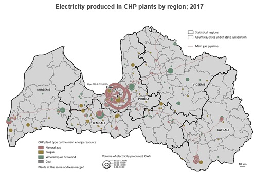 2017年,RES在熱電聯(lián)產(chǎn)電廠生產(chǎn)的電力的最大份額在Vidzeme和Zemgale地區(qū)分別登記 - 分別為89%和82%,而在里加則為最小份額 - 占該地區(qū)總電量的3%。